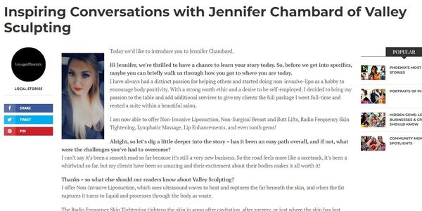 In this feature, discover how Jennifer Chambard and Valley Sculpting are transforming lives and empowering the community with non-invasive treatments. Shoutout Arizona Magazine does an excellent job demonstrating how Valley Sculpting is pioneering the industry, from boosting confidence with non-surgical lipo to leading women's health through vaginal rejuvenation and pelvic floor therapy, see how they’re making a real impact. Ready to be inspired? Read on!